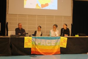 Tre rappresentanti del comitato “Civitanova per la pace”, Ilaria Melatini, Alessandra Broccolo e Federica Pietrella (docente del nostro liceo) accompagnano Robert Chelhod, siriano,