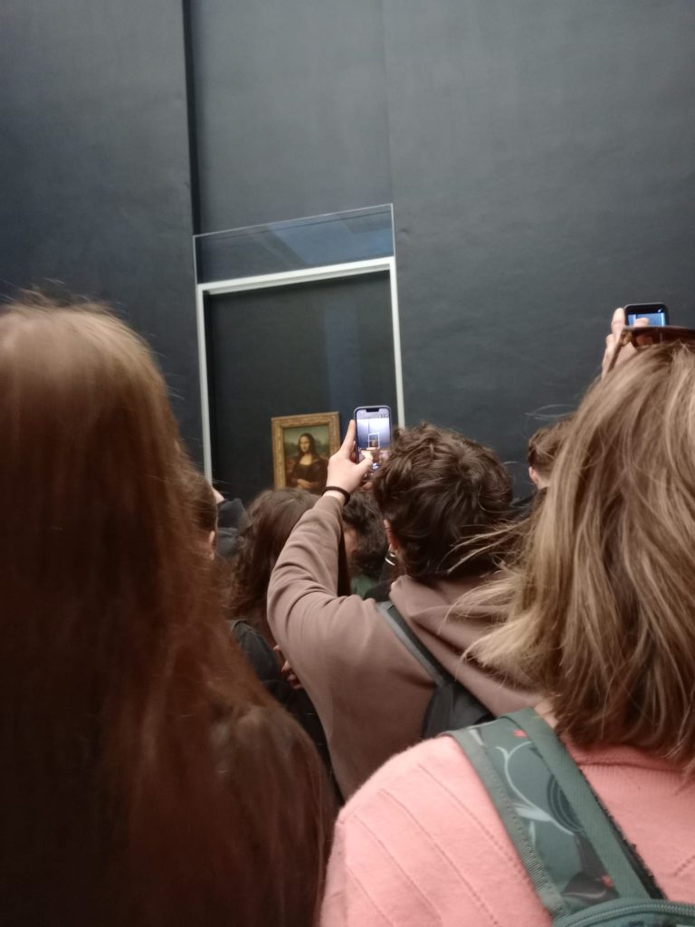 Oltre alle lezioni e alla vita in famiglia abbiamo anche scoperto la città con le sue meraviglie. Cosa dire della Tour Eiffel che ci ha lasciati letteralmente senza fiato: è immensa, imperiosa e al tempo stesso eterea, è bella, veramente molto bella. Quando siamo arrivati sotto di essa per cercare il “Pilon” da dove salire, ci girava la testa, non potevamo credere di essere proprio lì, in quel luogo iconico, a Parigi, il sogno di tutti noi. E poi, una volta saliti, la vista su Parigi a 360° ci ha ripagati della fatica di aver fatto tutti quei gradini. Abbiamo potuto apprezzare un’altra prospettiva dall’alto sulla città di Parigi da Montmartre, dove in ogni piccola stradina o piazzetta si respira ancora la stessa atmosfera riprodotta nei quadri impressionisti del XIX secolo: è stato bello vedere le cabaret “Le Lapin Agile” e la “Maison Rose” e immaginare gli artisti che hanno frequentato questi luoghi. Anche l’esperienza del “Bateau Mouche” ci ha entusiasmato perché scivolando sulla Senna abbiamo riconosciuto i vari monumenti visitati, tra cui la cattedrale di Notre Dame, imperiosa sull’ile de la Cité e i bellissimi musei, dei veri e propri scrigni magici dove abbiamo potuto scoprire le ricchezze artistiche che essi celano. Siamo passati dalla casa-museo di Victor Hugo al Musée Cluny con i suoi meravigliosi arazzi della “Dame à la Licorne” dall”Orangerie” con le ninfee di Monet, alla BNF e al “Musée d’Orsay” pieno di luce e di capolavori, per stupirci con la visita al Louvre, l’immenso palazzo reale conosciuto in tutto il mondo e che ci è sembrato quasi un labirinto tappezzato di opere d’arte: è stato bello riconoscerne molte che avevamo già visto sui nostri libri ma che dal vivo ci hanno lasciato a bocca aperta. Un’altra bella esperienza è stata la lezione al “Musée Rodin”, organizzata da Mme Slataper, insegnante di Italiano del Liceo, dove abbiamo apprezzato la lettura di brani tratti dall’Inferno di Dante Alighieri come supporto alla visione delle opere scultoree di Rodin in particolare “La Porte de l’Enfer” e ” Le Penseur”. Un’altra lezione molto interessante, organizzata da Mme Millot, anche lei insegnante di italiano del Liceo e impeccabile organizzatrice del nostro soggiorno Erasmus+, è stata svolta in maniera itinerante nei luoghi delle vestigia romane della città e all’Hôtel de Ville dove, in occasione del 70° anniversario del gemellaggio Roma-Parigi è stata allestita una mostra fotografica. Alcuni di noi hanno aiutato gli alunni francesi a rispondere a delle domande e a leggere delle informazioni così abbiamo trascorso un bel pomeriggio tra le bellezze di Parigi. L’ultimo giorno infine abbiamo assistito allo spettacolo teatrale curato da Mme Millot che ha visto un gruppo di studenti francesi e un gruppo di liceali italiani collaborare e mettere in scena una pièce su Ulisse e il viaggio, in sole due settimane. Un lavoro veramente interessante e ben riuscito, un’occasione per loro di collaborare e mettersi in gioco che ci ha stupito.